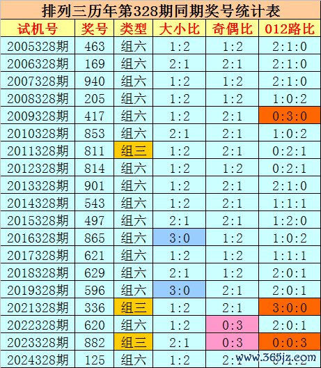 组选类型保举:历史上陈列三第328期同时奖号中,组六出现16期,组三出现3次,本年第328期预测奖号为组六号码。